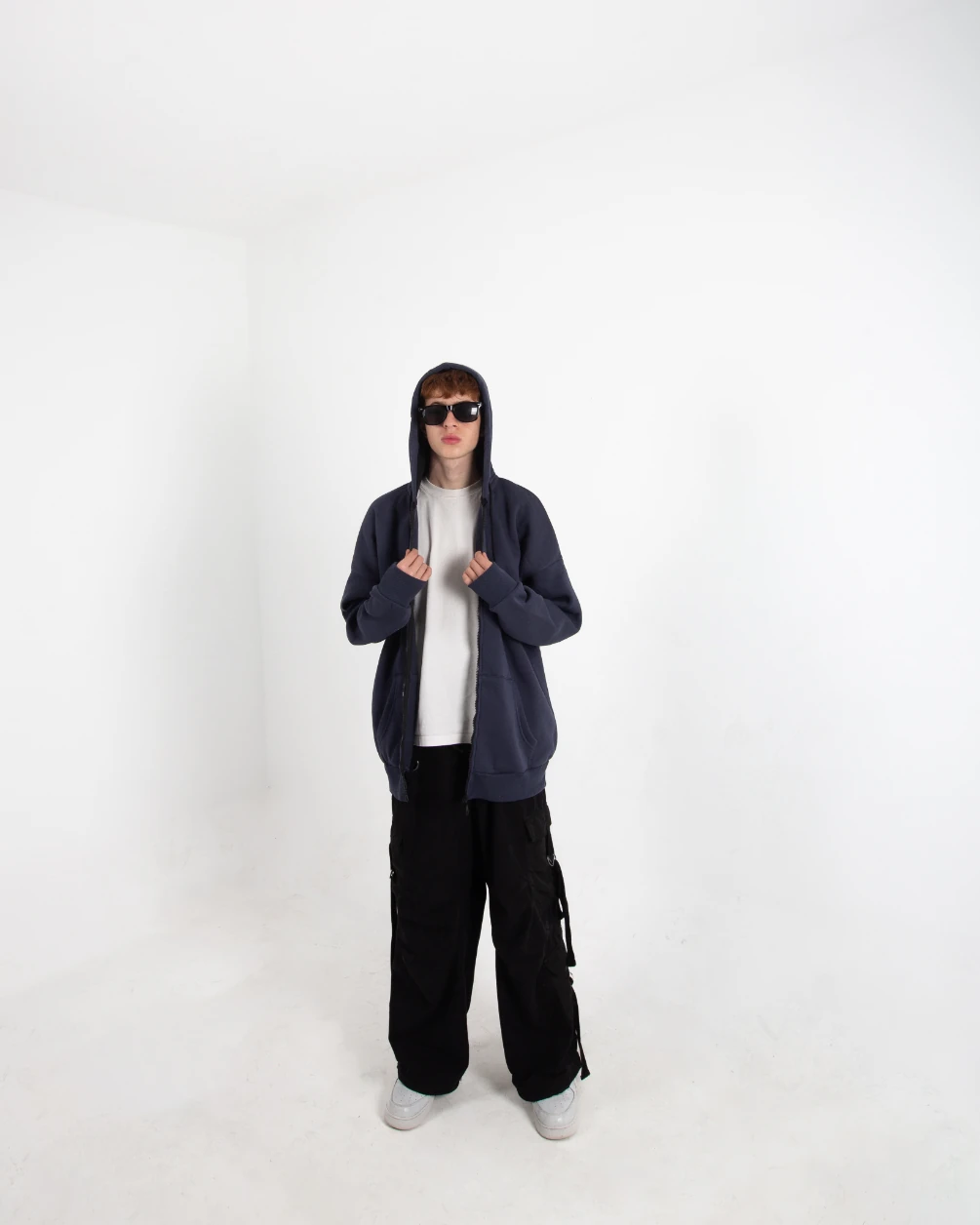 Erkek Lacivert Basic Zip Oversize Sweatshirt