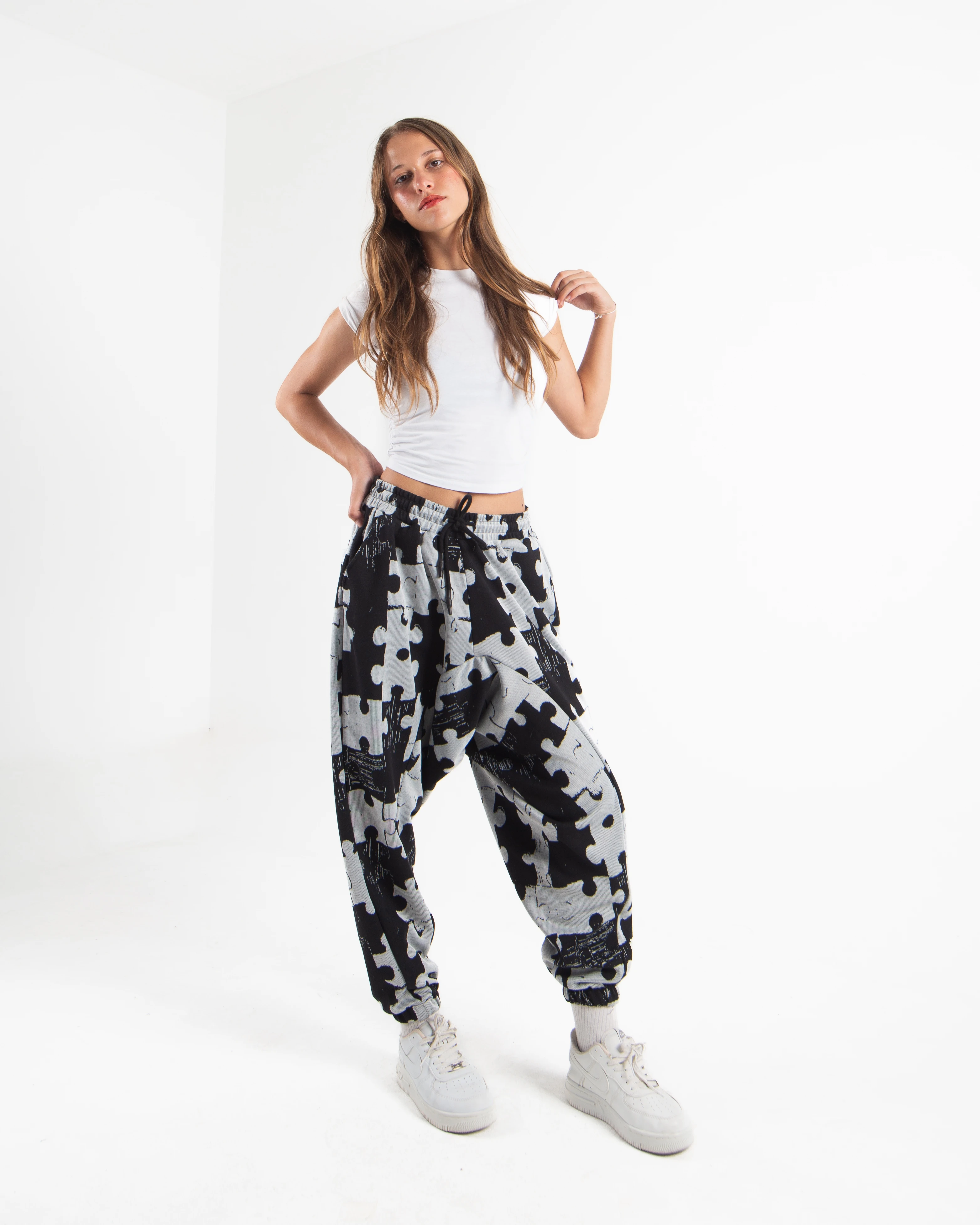 Gerusta Kadın Siyah Grafiti Baskılı Şalvar Pantolon